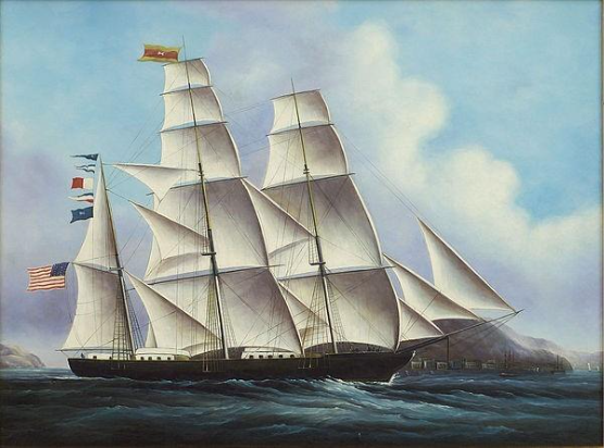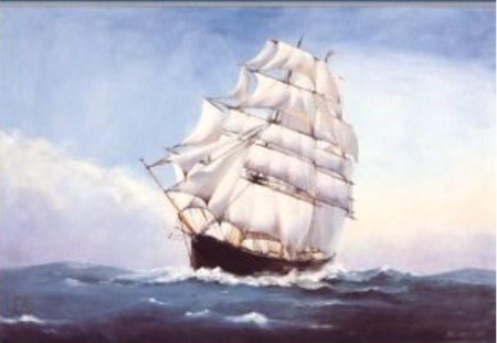 The Painting by Charles Robert Patterson, owned by Frederick de P. Foster, whose father and grandfather gave Donald McKay his first commission to construct a ship of his own design. Commissioned by Messrs. Andrew Foster & Son, New York.